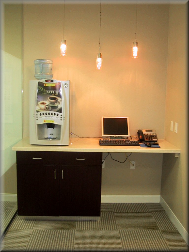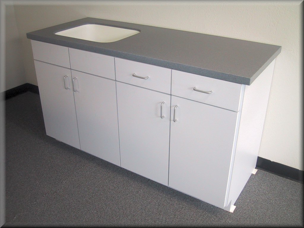 • Euro-Style Lower Cabinet with Solid Surface Corian Top, Melamine Exterior - Interior Cabinets