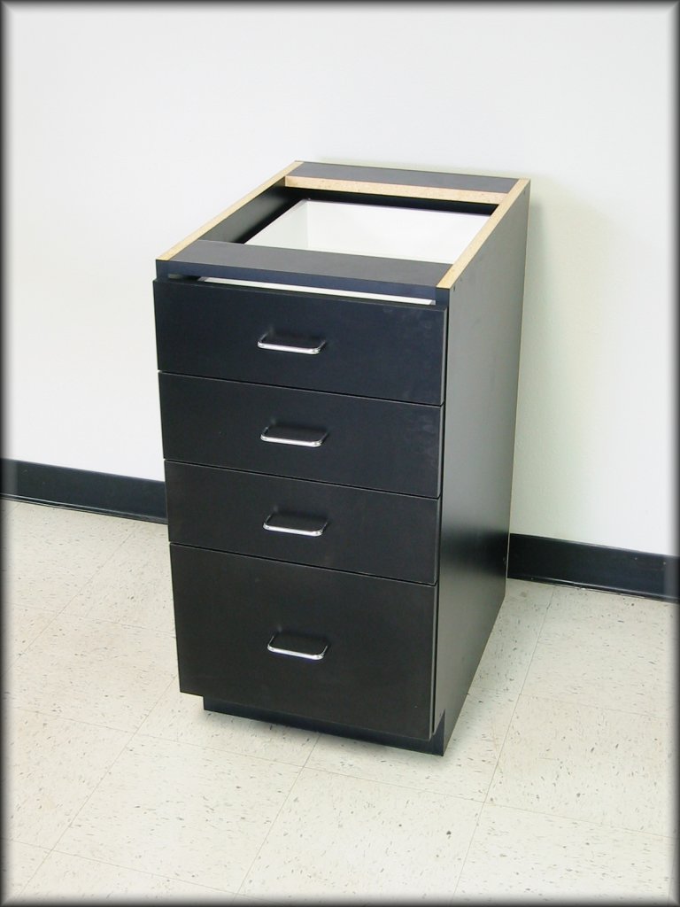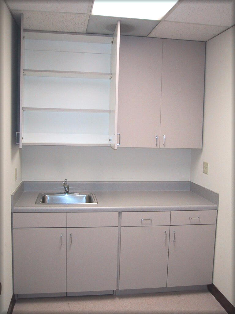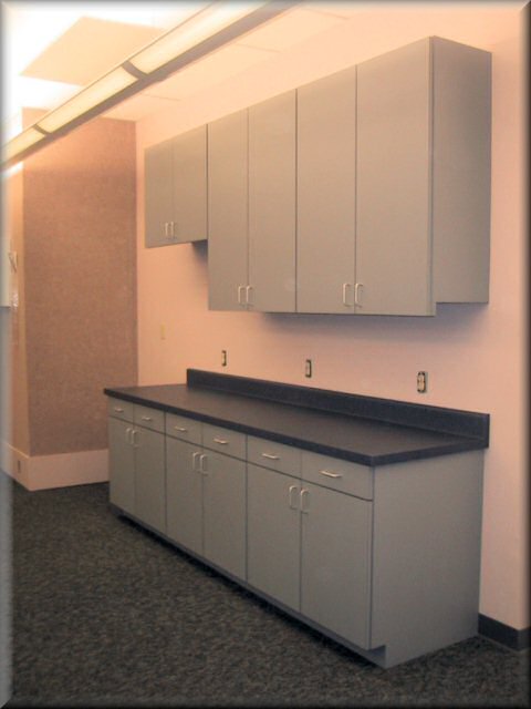 • Euro-Style Cabinets with Plastic Laminate Top & Exterior - Melamine Interior
